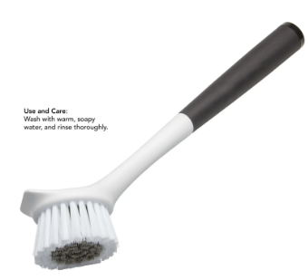 - Round angled brush head is perfect for cleaning the bottom and sides of sauté pans