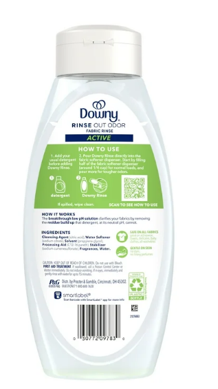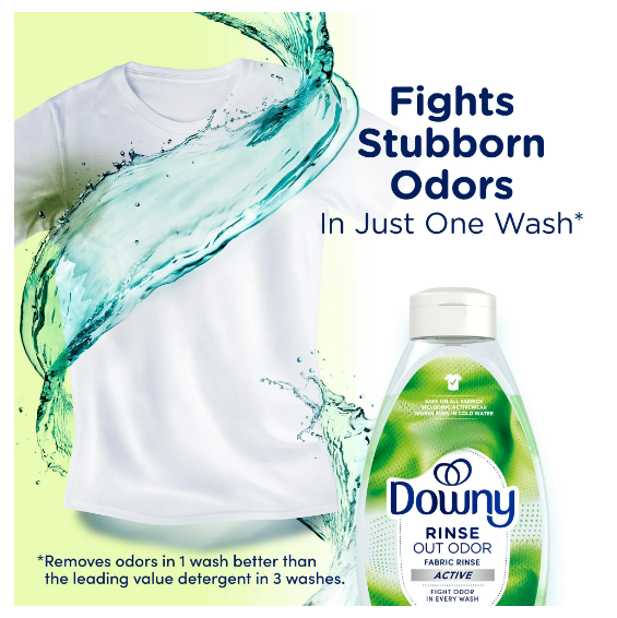 Tired of stubborn odors that never seem to wash out of your clothes? Is your laundry looking but not smelling as clean? Downy Rinse Fabric Odor Remover rinses out unwanted lingering odors and refreshes your laundry. Formulated to break down and remove odors at the source, Downy Rinse Fabric Odor Remover eliminates deep set-in odors instead of just covering them up. Fighting stubborn odors was never this fast and easy. Simply pour Downy Rinse directly into the fabric softener dispenser after adding detergent. Downy fabric rinse removes odors better in just one wash versus the leading value detergent in 3 washes. Downy Rinse functions as a laundry rinse and it’s safe to use on all fabrics—activewear, everyday clothes, towels, delicates, baby clothes, and more. Plus, it’s free of heavy dyes and perfumes, making it gentle on skin. Looking clean and smelling fresh is now easier with Downy Rinse Fabric Odor Remover! Includes one 25.5 fl oz bottle of Downy Fabric Rinse Laundry Odor Remover and Softener in the Active Fresh scent.