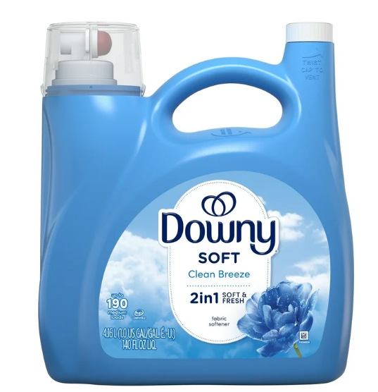 Give your clothes a softer feel and a long-lasting refreshing scent with Downy Clean Breeze Fabric Softener. Downy Fabric Softener soothes the senses routinely with every wash, giving the fabrics a delightful softness to touch and a revitalizing crisp scent. Downy Liquid Fabric Softener is compatible with all top- and front-loading HE machines. It's easy to use—after adding your favorite laundry detergent, pour Downy Liquid Fabric Softener into the fabric softener dispenser drawer or directly into the agitator and start the washer on your preferred cycle. Have clothes that are softer, gentler, and better* with Downy 2 in 1: Soft and Fresh Liquid Fabric Softener. 140 fl oz, 190 loads. (*vs. Detergent alone)