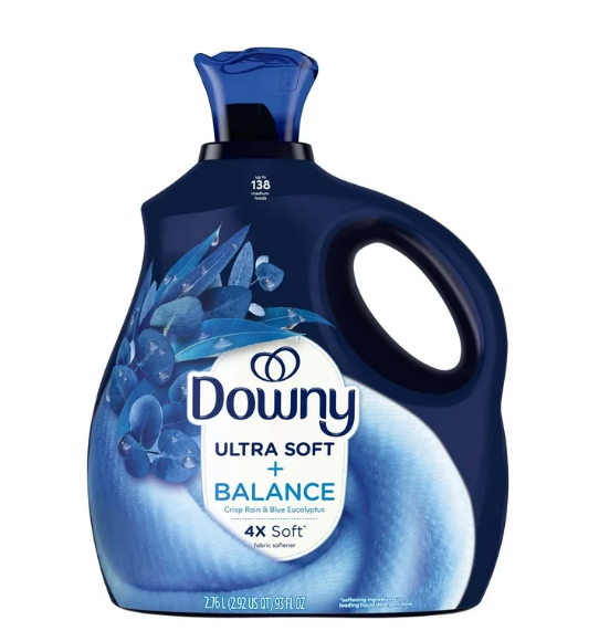 - Downy Ultra Soft Liquid Fabric Softener - Balance - Crisp Rain and Blue Eucalyptus - 138 Loads - 93 fl oz