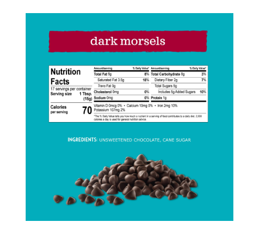 - Dark chocolate morsels that are made in a dedicated nut-free and gluten-free facility, making them safe for schools