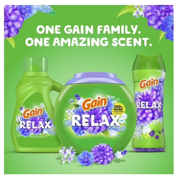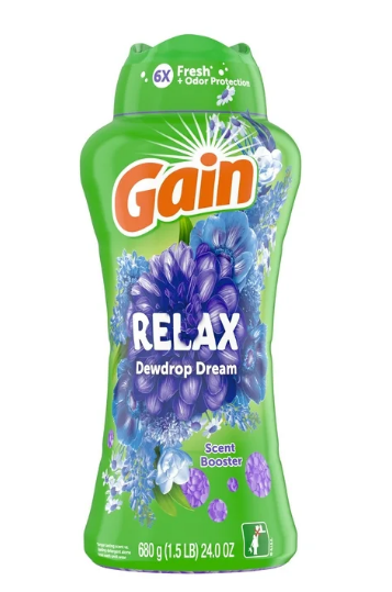 Sniff the good vibes. Transform your laundry room into your relaxing place with Gain Relax In-Wash Laundry Scent Booster Beads. With 6X freshness* plus odor protection, you'll sink into a state of bliss with a peaceful scent that surrounds you. With Gain Relax, every whiff will make your nose chill as can be. Just toss in Gain Relax scent booster beads before your laundry to get scent that lasts longer than detergent alone. No matter the machine, Gain Scent Booster Beads are compatible with all washing and water conditions, making it perfect for adding irresistible scent into your everyday laundry routine. Sniff the scent that's a whole vibe with Gain Relax. Or try a whole other vibe with Gain Happy. (*Longer lasting scent vs. leading detergent alone from wash until wear)
