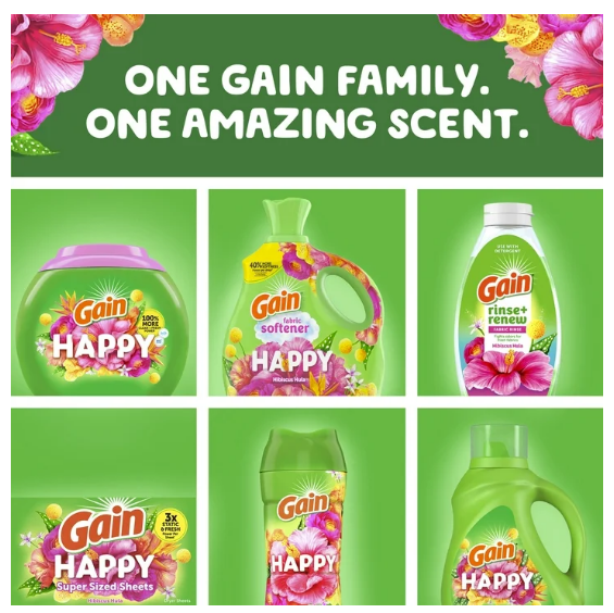 Experience the good vibes with Gain Happy Hibiscus Hula Liquid Fabric Softener and Conditioner. This premium scent and softness combo turns your laundry routine into pure joy. Gain Happy offers amazing softness and an irresistible fragrance that will transport you to a tropical paradise. With 40% more softening ingredients*, this fabric softener delivers a laundry experience that feels as good as it smells. Use a little or a lot to customize your scent and softness level. Gain Fabric Softener is safe for all machines and water conditions, even cold water. Try Gain Happy Hibiscus Hula today and embark on a delightful laundry journey. 71 fl oz, 104 loads. (*Softness ingredients vs. Gain Original Fabric Softener.)