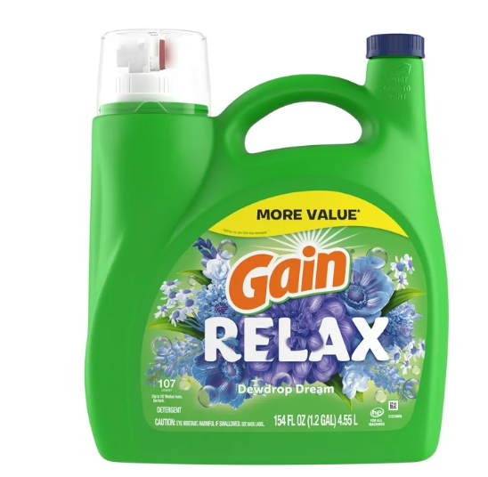 Gain Liquid Laundry Detergent, Relax, 154 fl oz, 107 Loads, HE