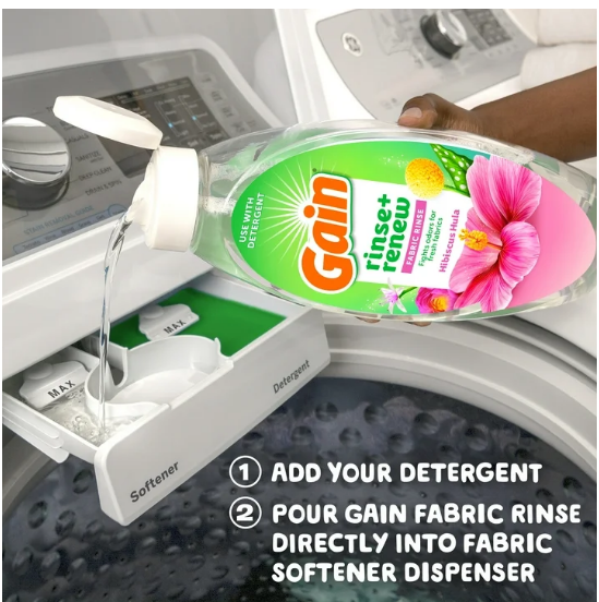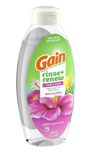- Includes one 48 fl oz bottle of Gain Rinse and Renew Laundry Fabric Rinse in the Hibiscus Hula scent