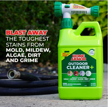- REMOVE TOUGH STAINS: Home Armor Outdoor Cleaner Concentrate blasts away stains from dirt, grime, algae, mold and mildew.