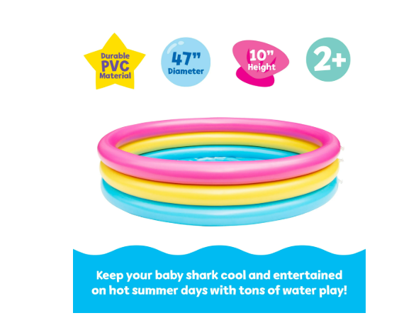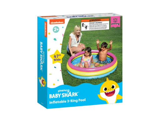 Pinkfong Baby Shark 3-Ring Inflatable Swimming Pool, Portable Pool for Summer Play (Ages 2+)