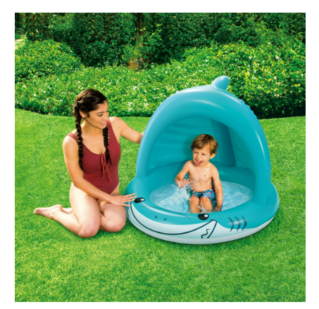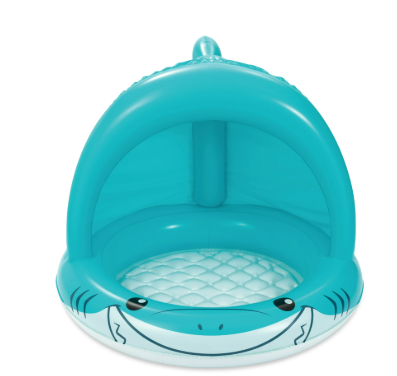 Play Day Inflatable Shark Shade Baby Splash Pool, Round, Blue, Ages 1-3, Unisex