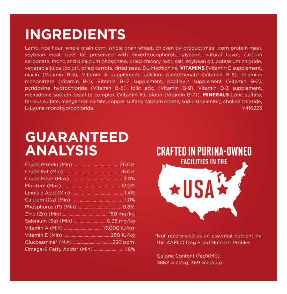 Purina ONE High Protein Dry Dog Food – Lamb & Rice Formula (16.5 lb Bag)