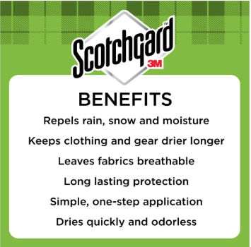 • WATER REPELLENT SPRAY: One Scotchgard Outdoor Water Shield Sprays, 10.5 oz cans, that protects fabrics against the elements