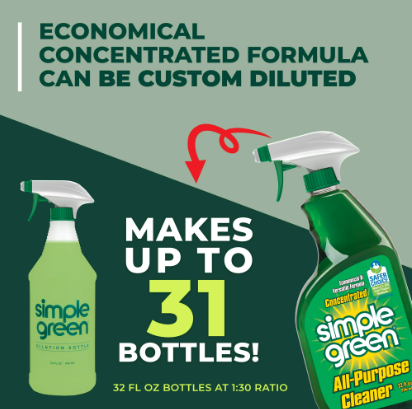 - Simple Green All-Purpose concentrated cleaner (32 fl. oz) removes dirt, grease, and stains